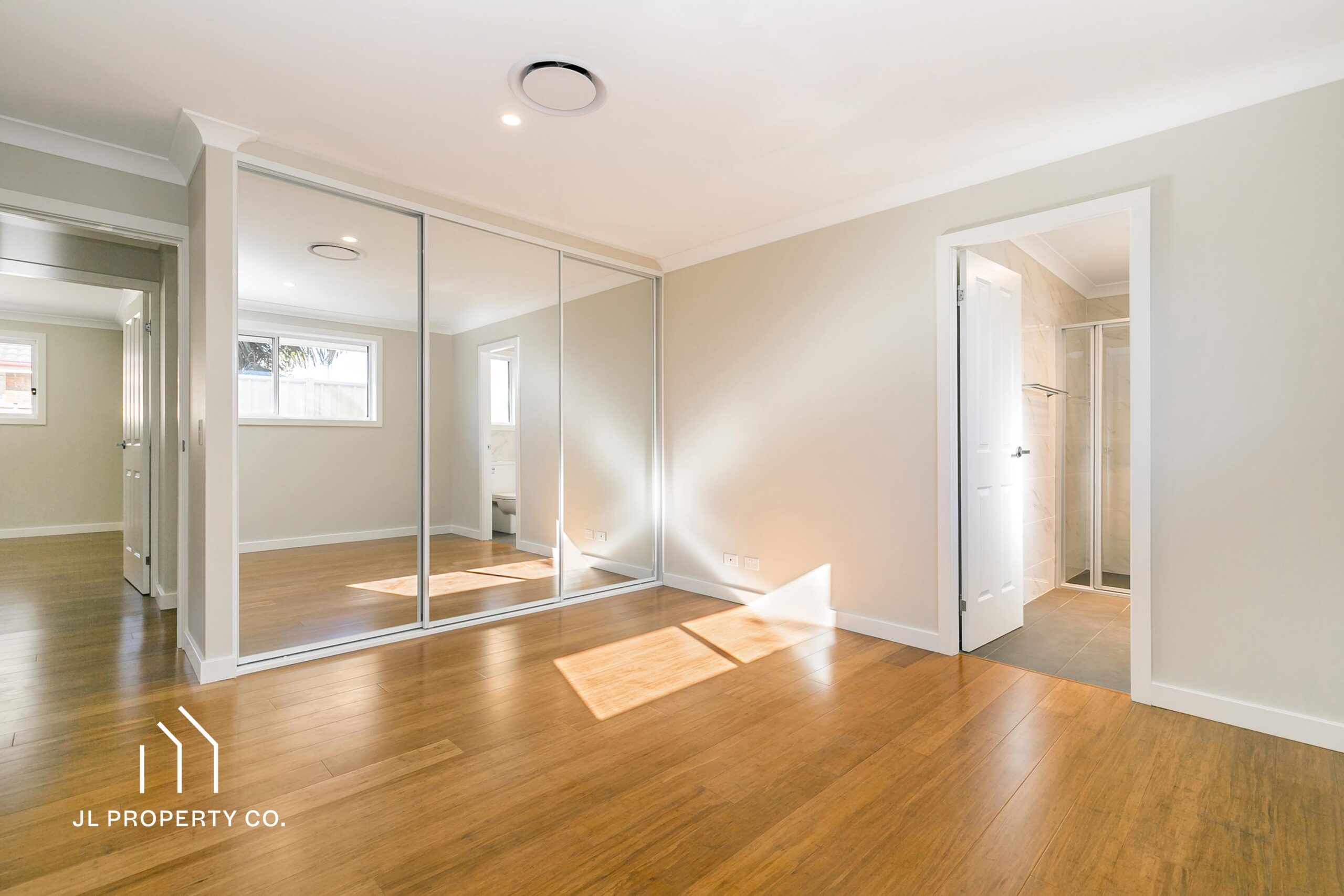 – Polished timber floorboards